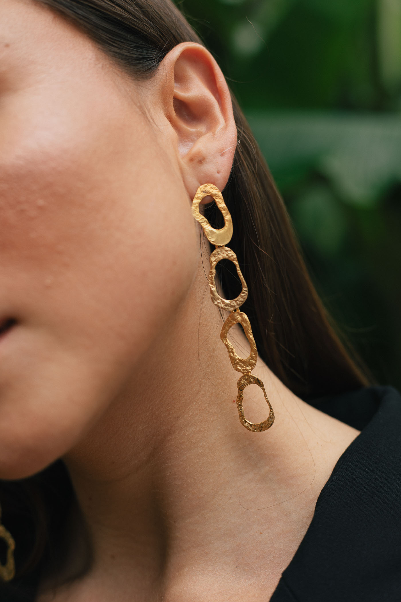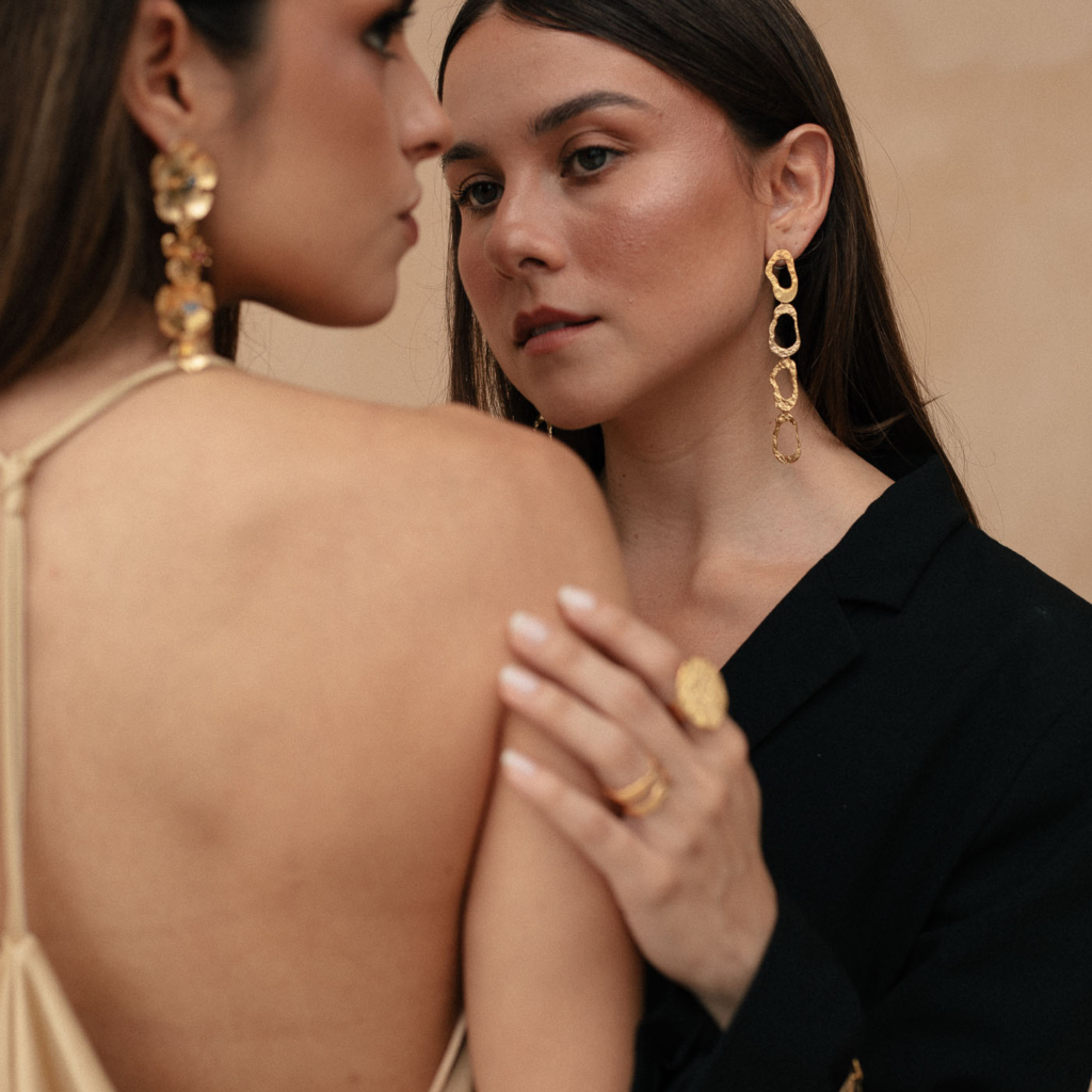 Inspirados en eslabones que caen como destellos encendidos, estos aretes largos crean un movimiento suave que ilumina el rostro. Elegantes sin esfuerzo.