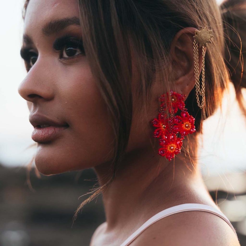 Un ramo encendido y statement para complementar un look que robará miradas.