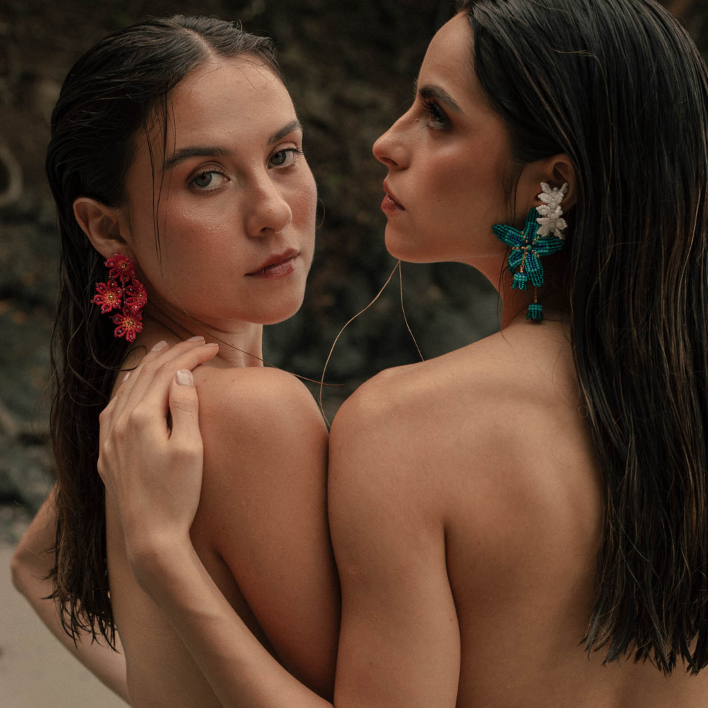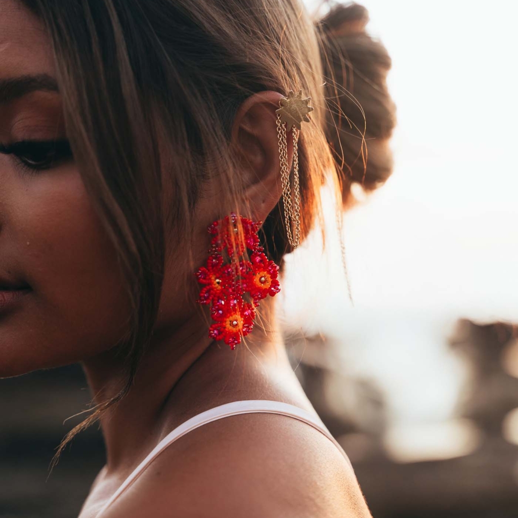• Arete con ramo de flores tejidas a mano con beads.