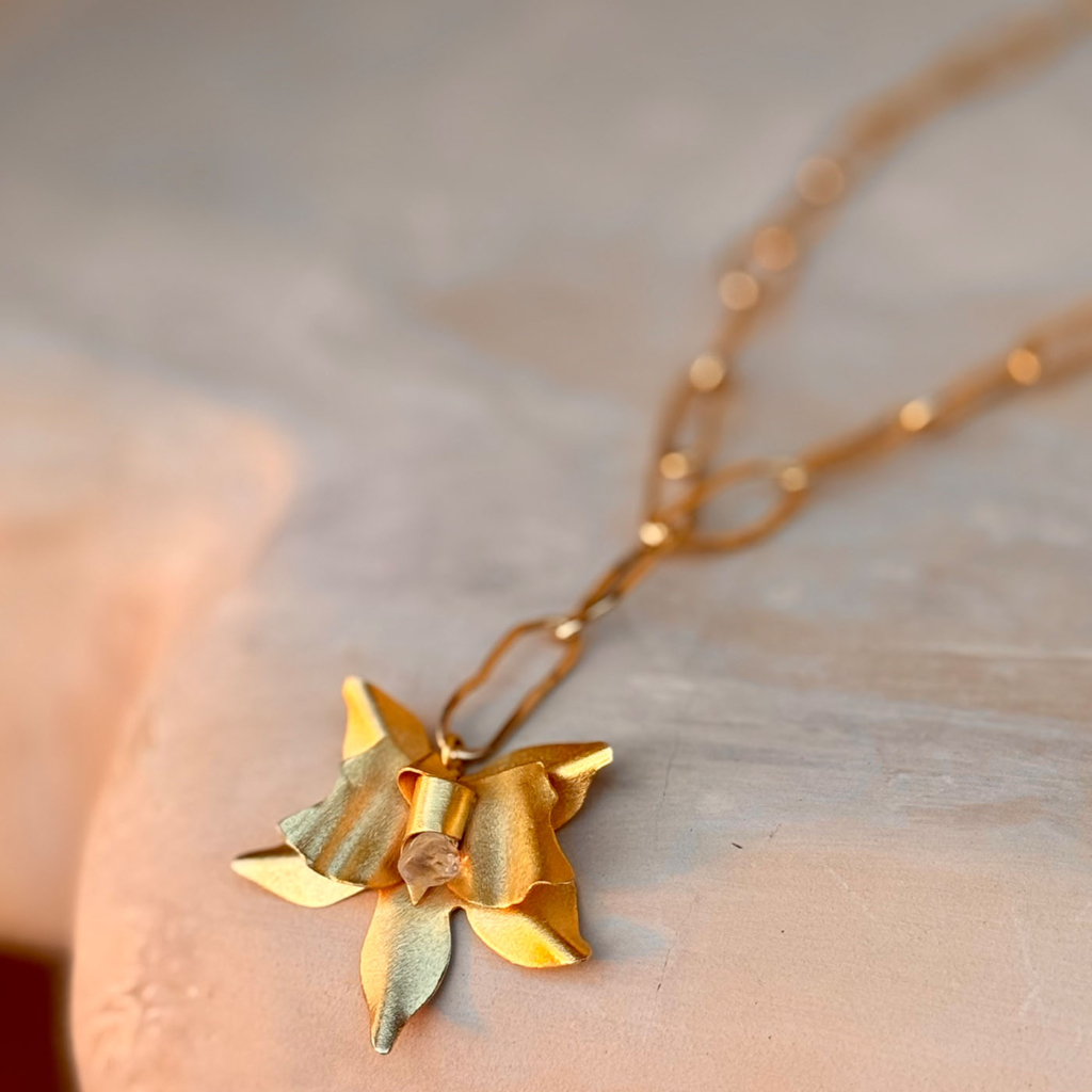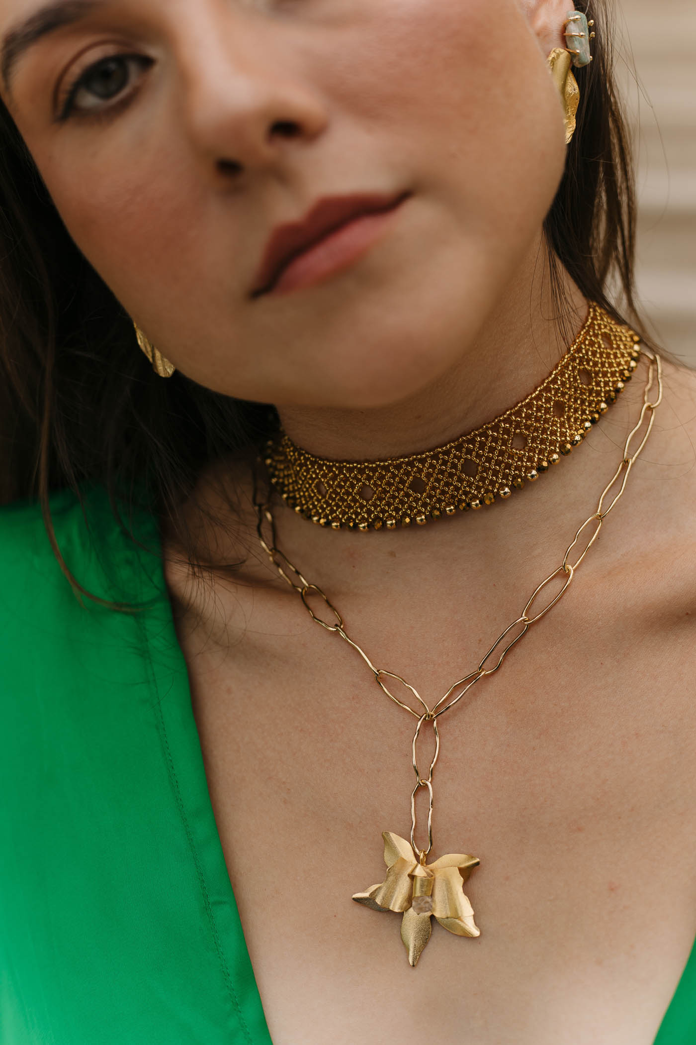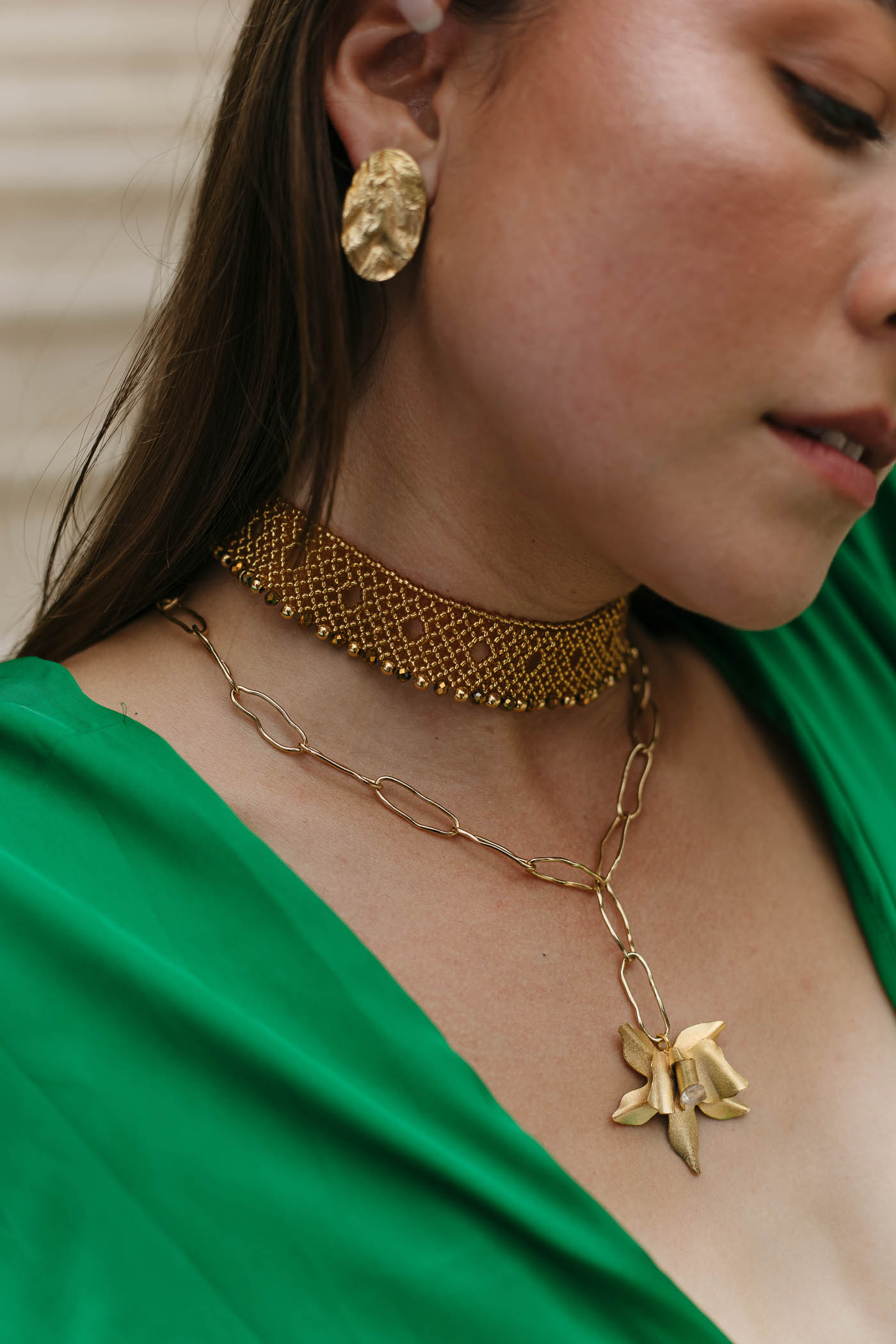Un diseño pensado para destacar con poder y delicadeza. Este collar Statement de flor con cuarzo será tu nuevo accesorio preferido.