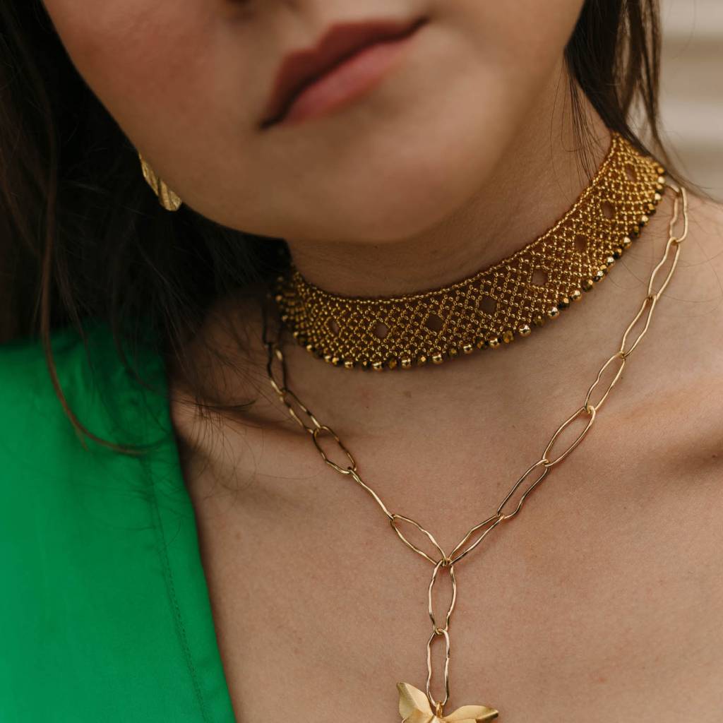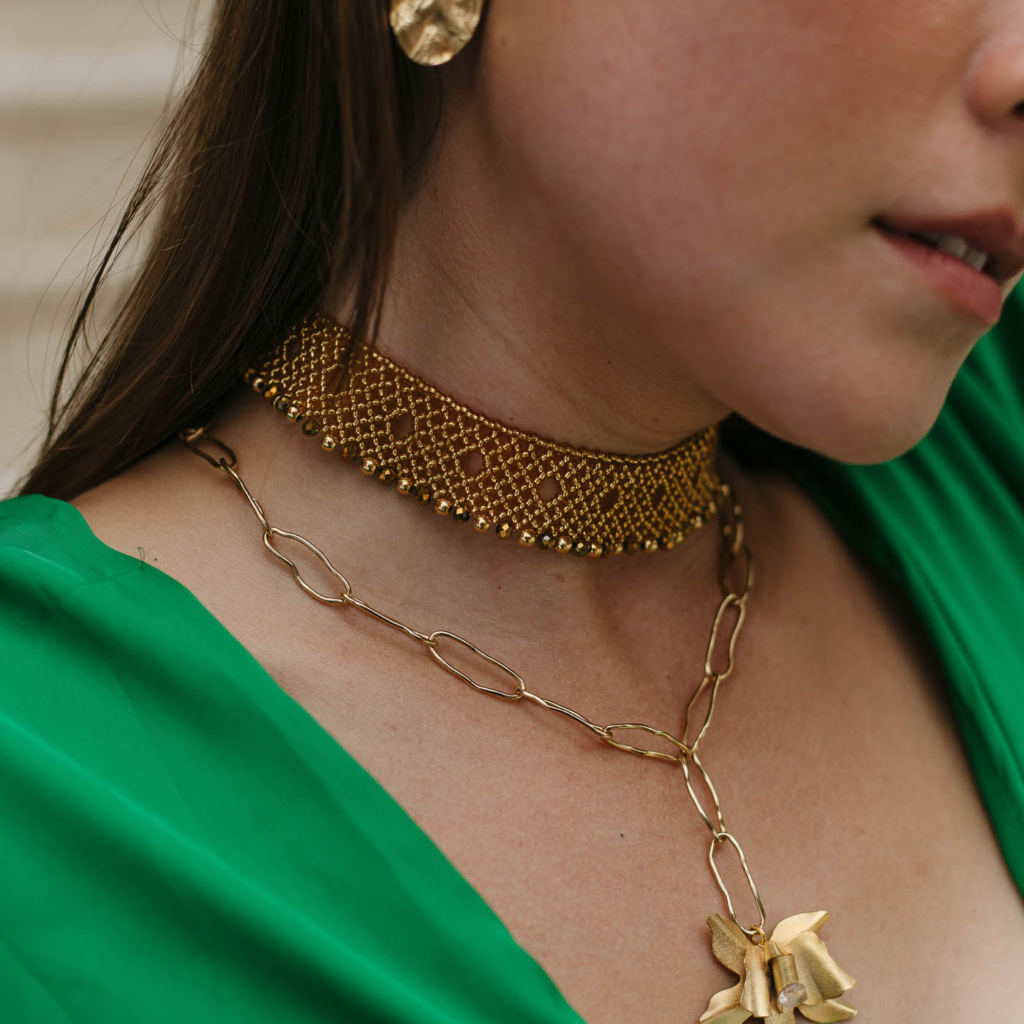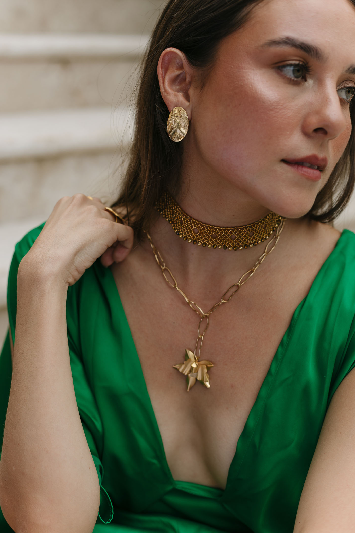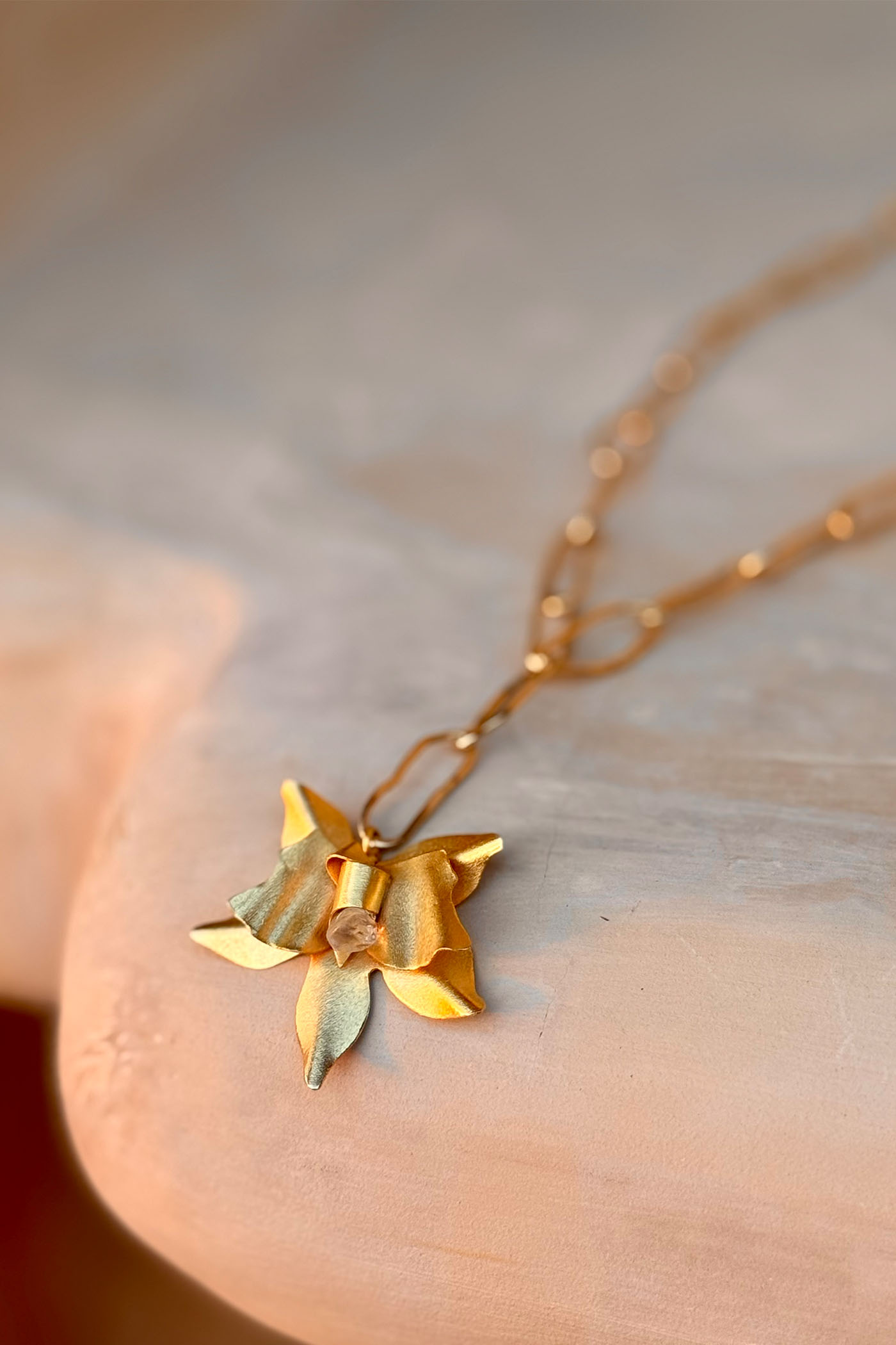 Un diseño pensado para destacar con poder y delicadeza. Este collar Statement de flor con cuarzo será tu nuevo accesorio preferido.