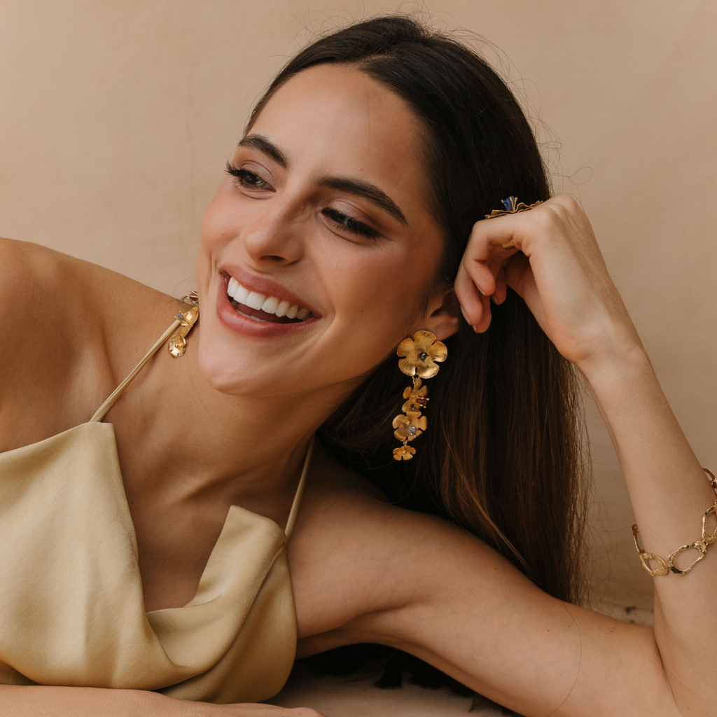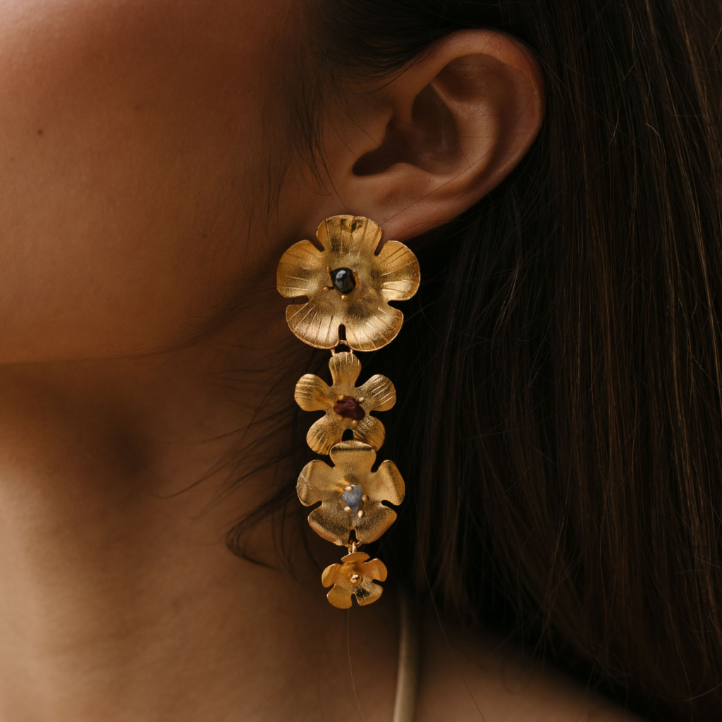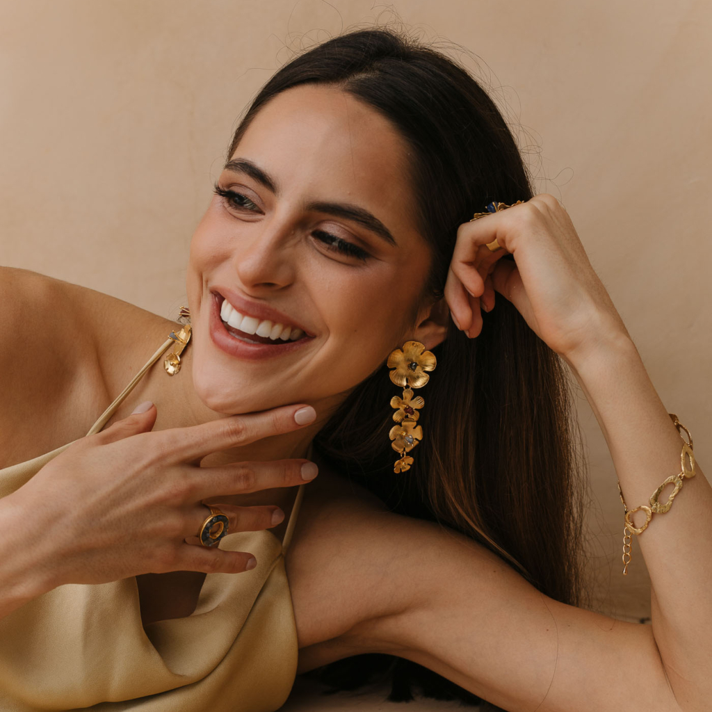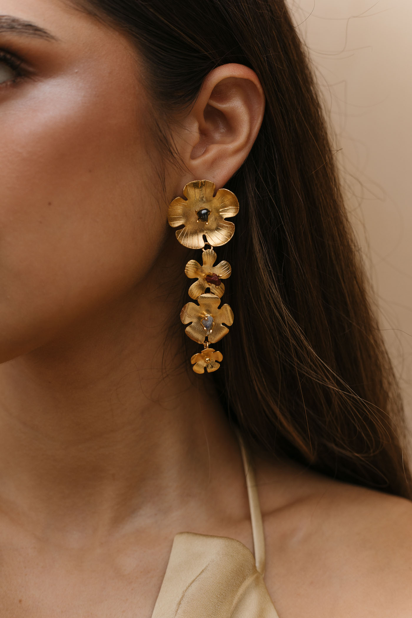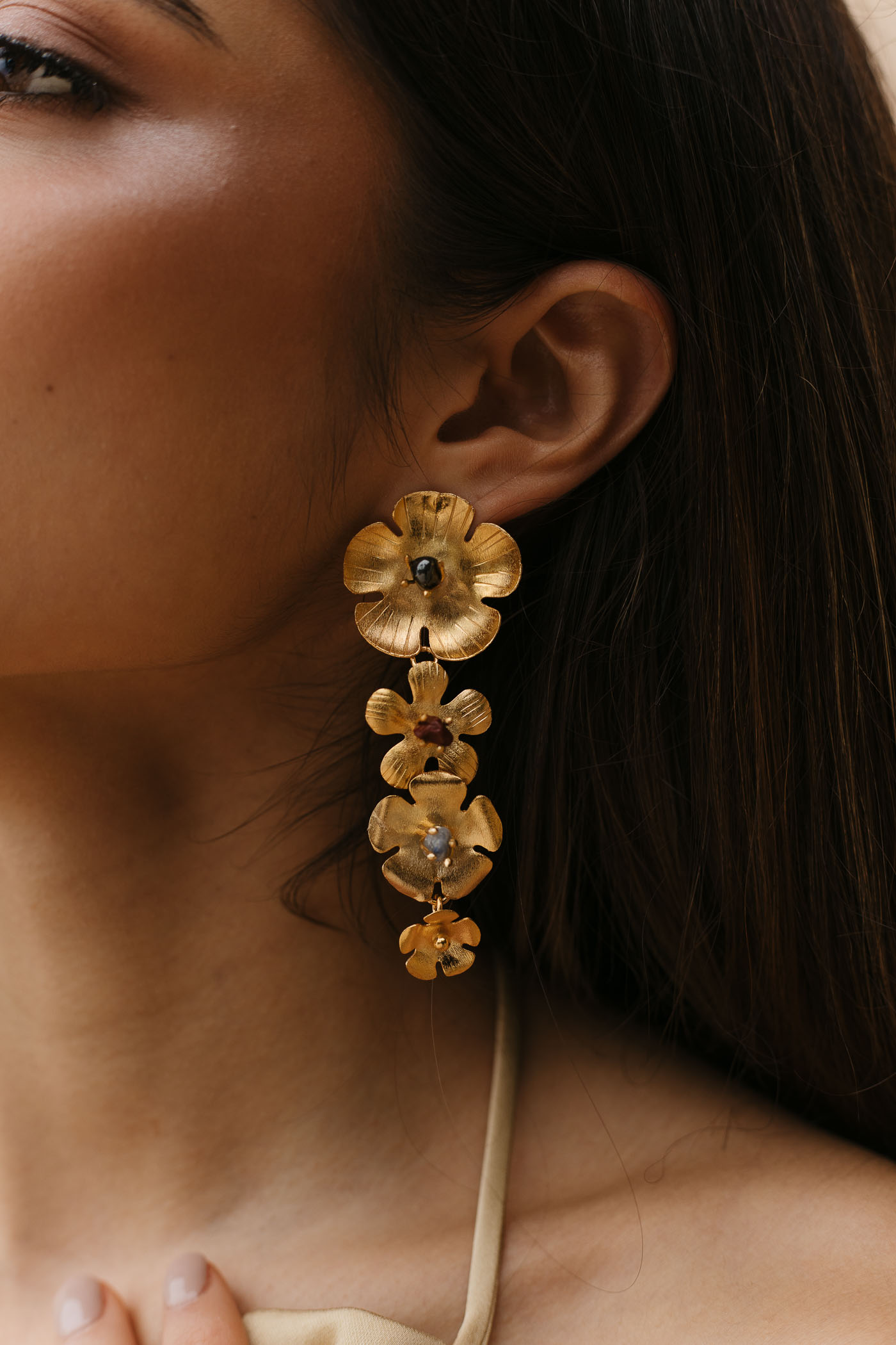 Los Statement Earrings con un mix de piedras semipreciosas más impresionantes para resaltar. Una composición detallada que celebra la diversidad de la naturaleza.