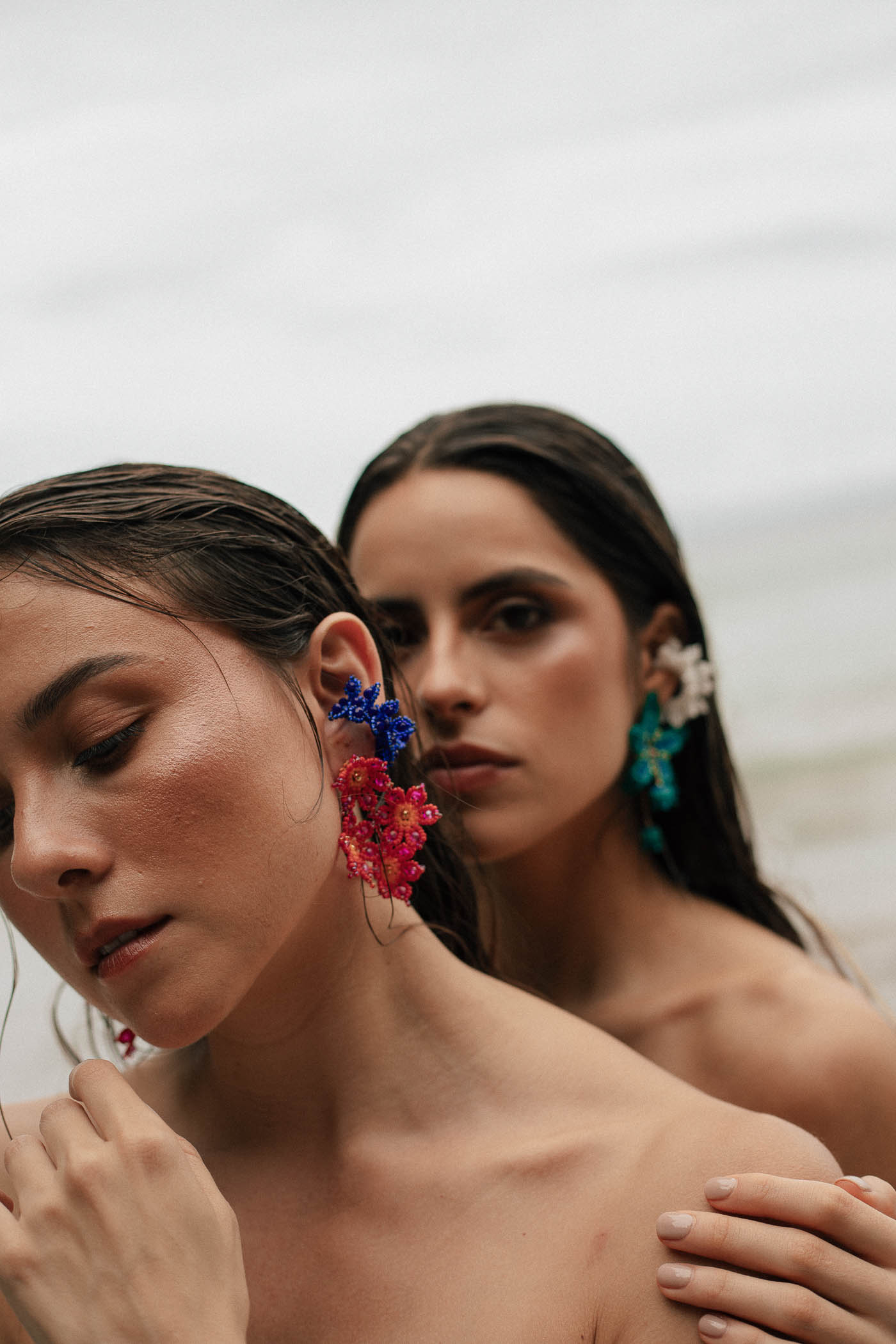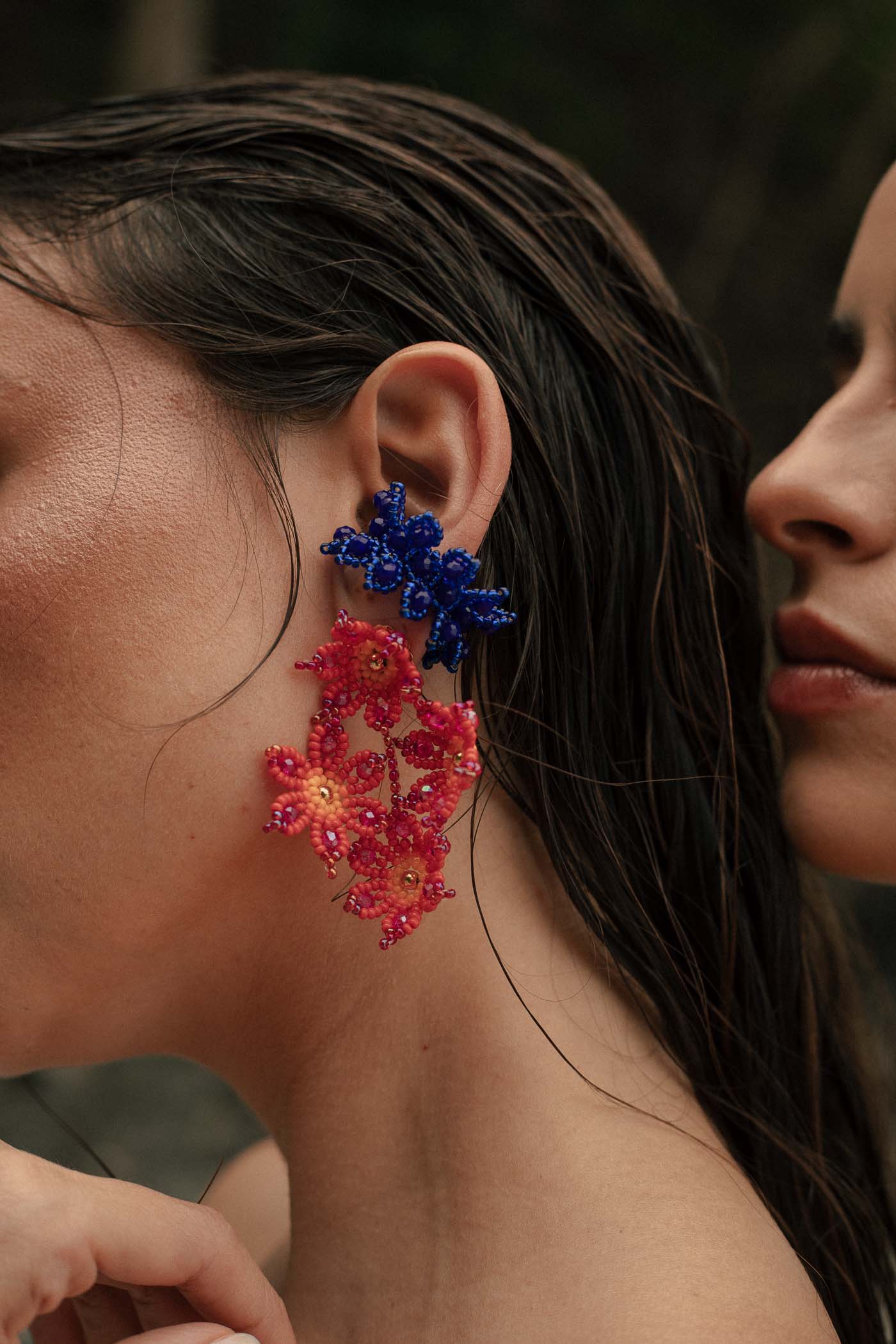 Hojas azules que se entrelazan en tu oreja como una pieza unica y llamativa para complementar tus aretes. Un ear cuff único y Statement.